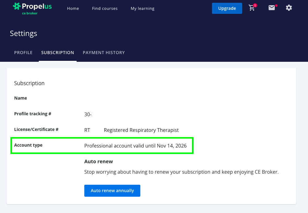 When you sign up for a Professional, Pro+, or Concierge account, your new benefit is set as an annual, auto-renewal feature.
