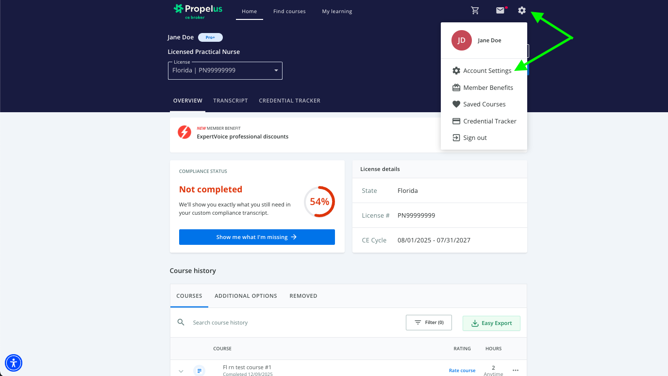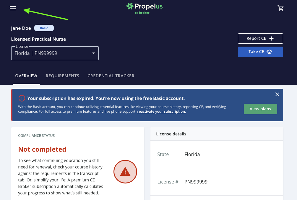 1. Log in to your CE Broker account