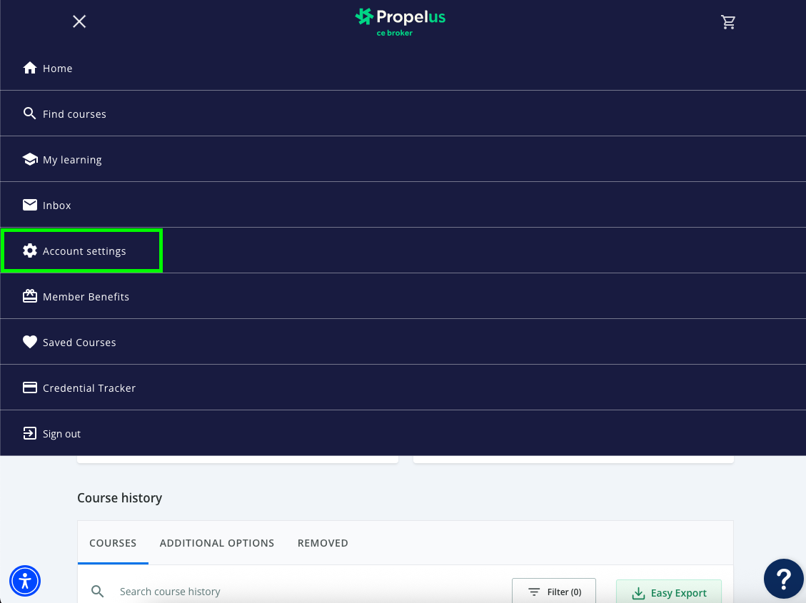 From the ≣ menu, you will then click on the ⚙️ Account Settings