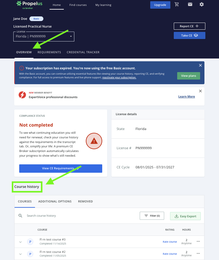 Your Course History