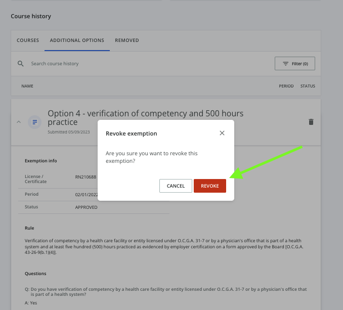 - Revoked: Exemptions that have been reported in error and removed at your request will remain on your exemptions tab with the "Revoked" status.