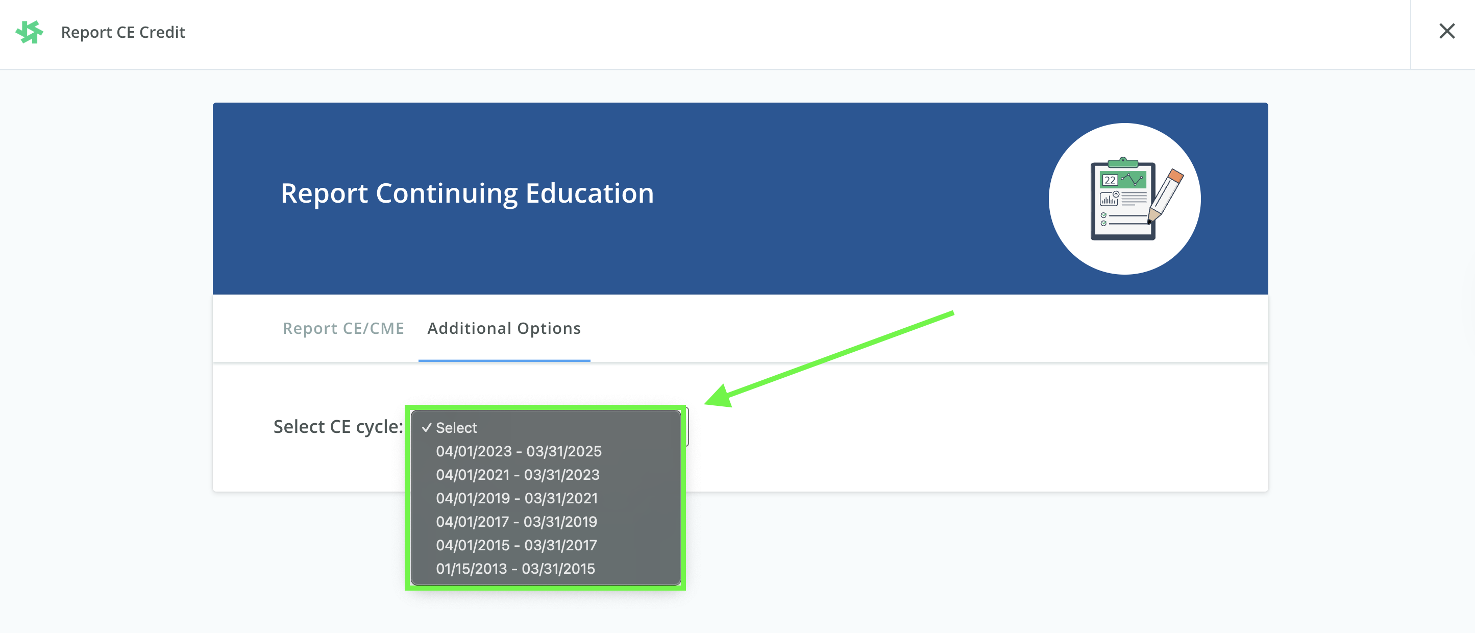 The dates you select will correspond with your current license cycle date.