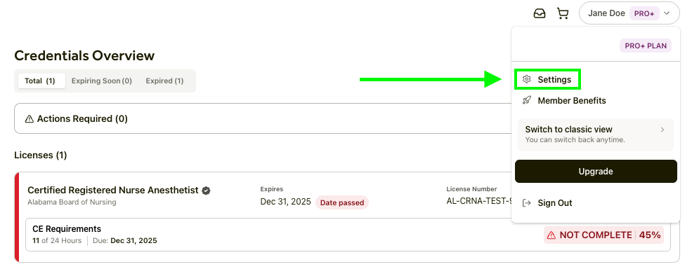 1. Log in to your CE Broker account
