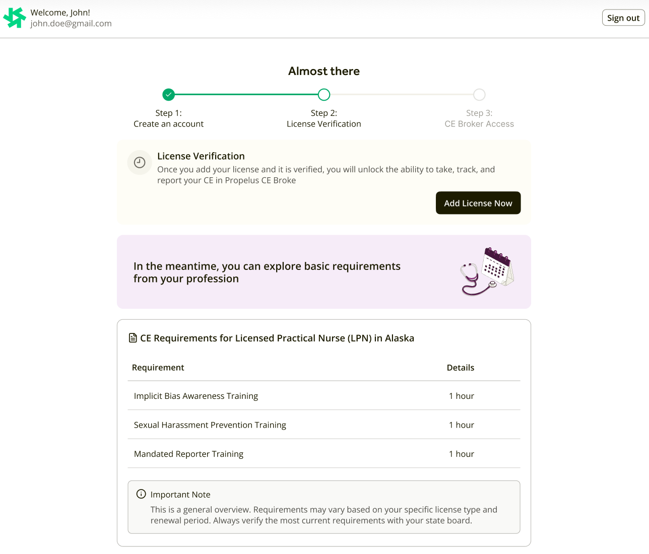 The new CE Broker experience is designed to grow with you, providing a modern and reliable home for your professional journey. By simplifying account management, automating license verification, and offering clear visibility into your compliance status, we are excited to help you save time and focus on what matters most—your career. We look forward to supporting your continued professional excellence with these new, powerful tools.
