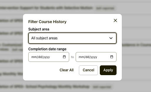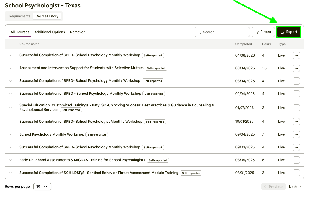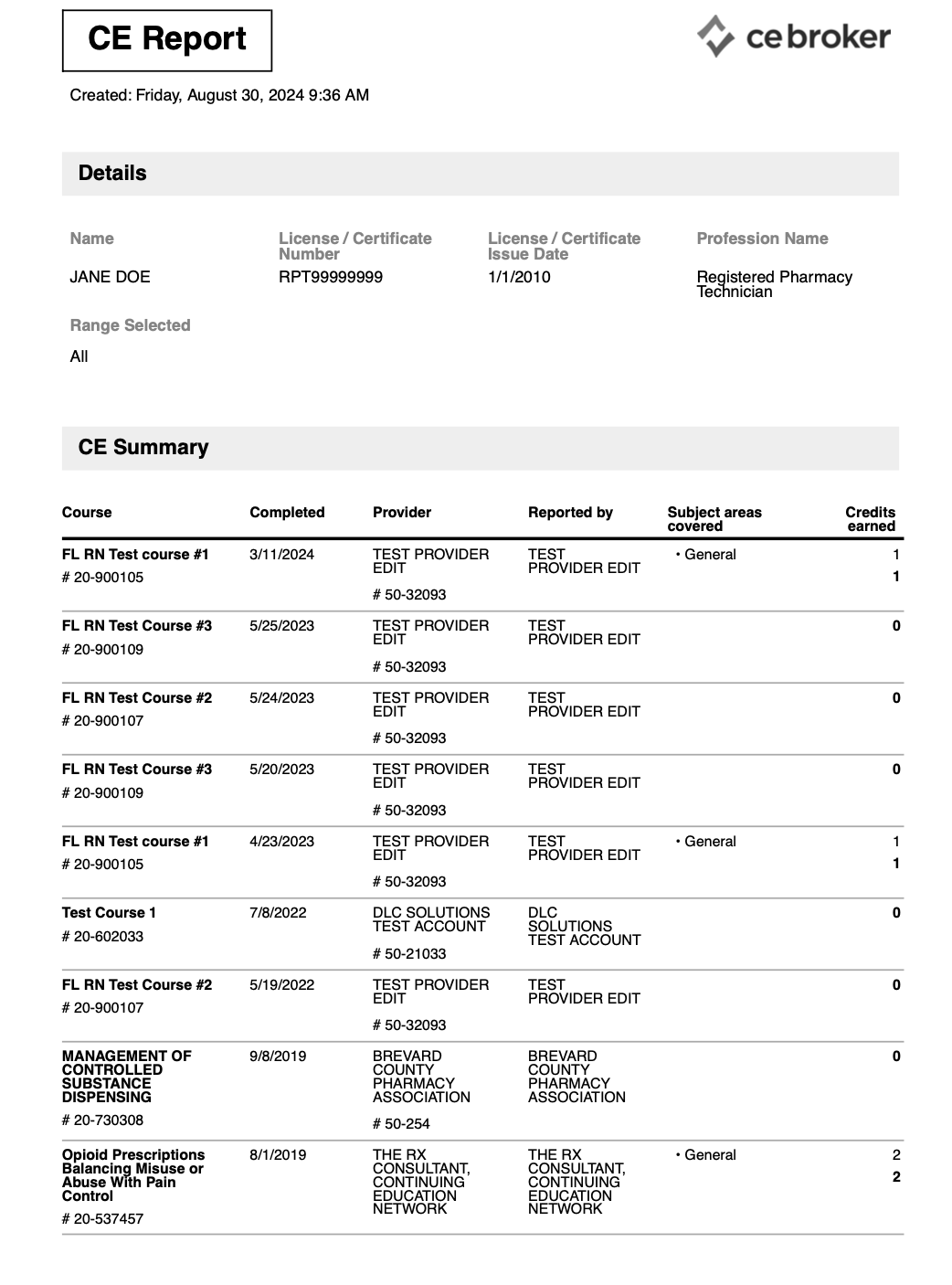 If you need to download your records for personal use or to share with an entity not partnered with CE Broker, you can download a detailed record of everything that is reported to your account.