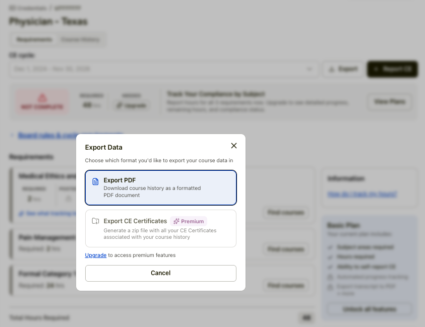 As a licensed professional, you are able to download a PDF transcript of your CE/CME course history from within your CE Broker account.