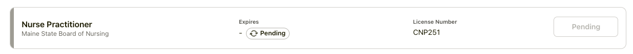 After you submit a new license, it will appear at the top of your Credential Overview page. There are two possible statuses during this verification process: