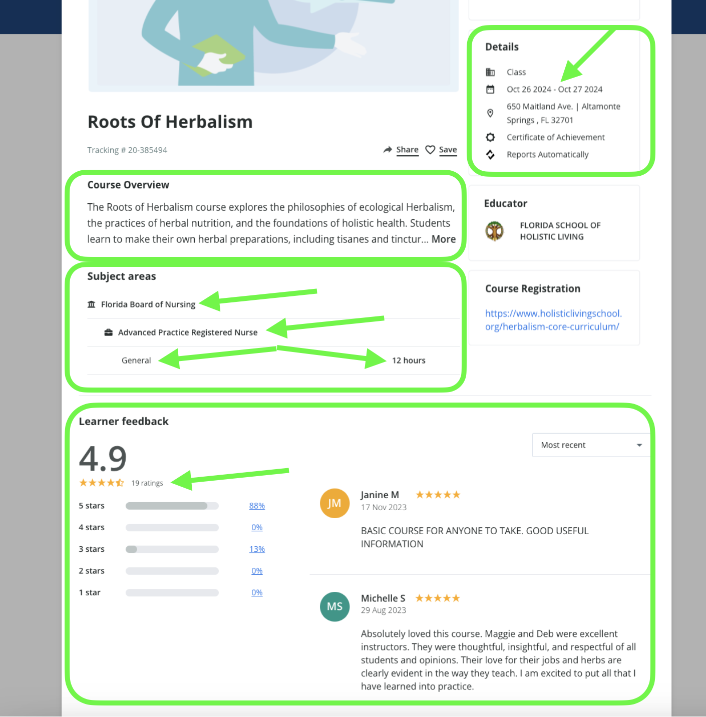 If you need additional information about a course, you can contact the education provider directly. To do this, click on the provider's name to view their profile page. From there, you can use the provided web link to navigate to their site and explore course options. This profile page also often includes a contact phone number for any questions you may have once you leave the CE Broker website.