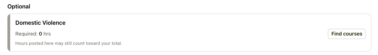 Some professions have renewal requirements that vary each cycle—for example, a regulating entity may require a Recognizing Impairment course every other renewal and Domestic Violence credits every third cycle. This can be confusing to track.
