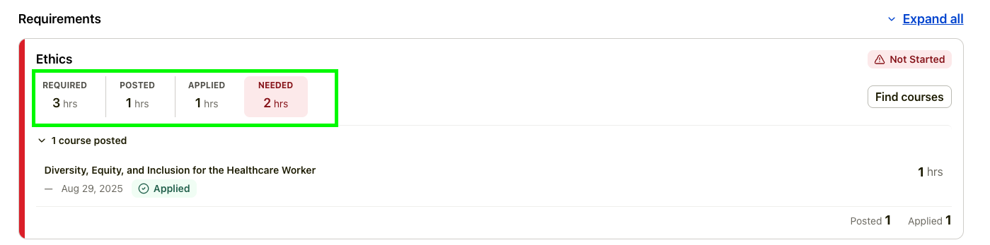 Required subject areas will show you exactly how many hours must be completed, and how many hours you currently need.
