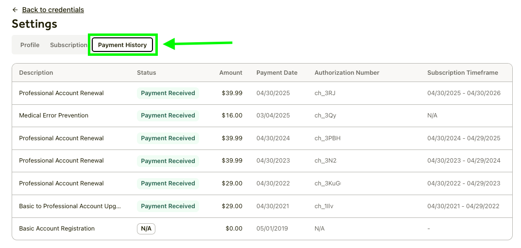 3. Once on the Account Settings, locate and click on the Payment History tab.
